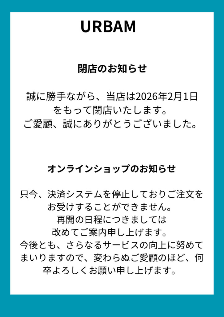 重要なお知らせ2026.01.29 Warning: Undefined array key "file" in /home/r0783072/public_html/urbam.jp/wp-includes/media.php on line 1774 Post 記事のタイトルとURLをコピーする ❁年末年始のお知らせ❁ 最新のお知らせ 2026.01.29重要なお知らせ 2025.12.15❁年末年始のお知らせ❁ 2025.12.01❁12月営業日❁ 2025.11.06❁11月営業日❁ 2025.10.03❁10月の営業日❁ お知らせ一覧